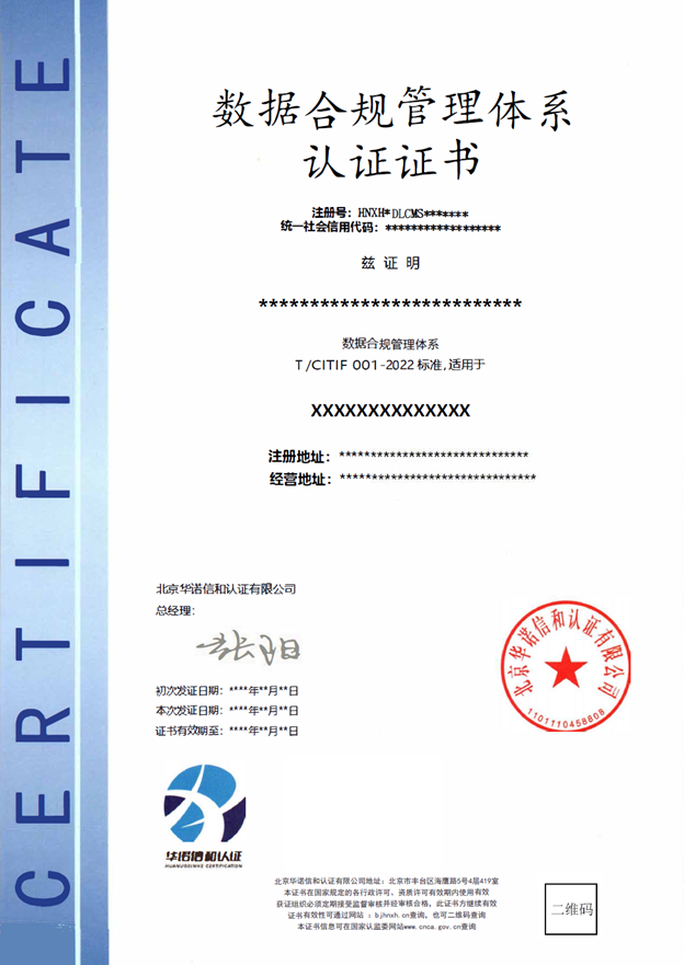 2、按照T/CITIF 001—2022标准的要求建立文件化的数据合规管理体系。