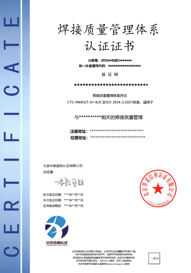 (2) 按照ISO 3834标准的要求建立文件化的焊接质量管理体系。