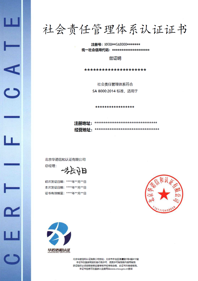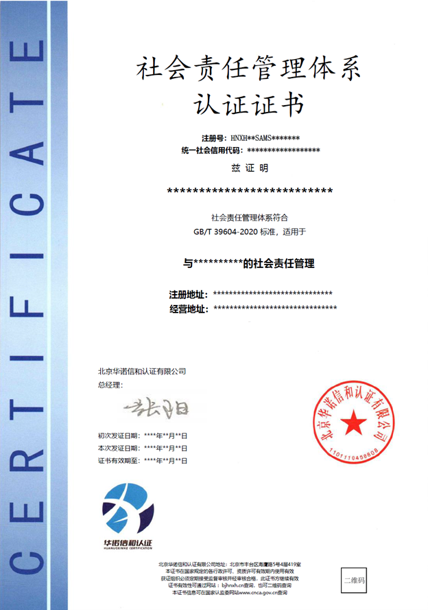 除此以外,申请社会责任管理体系认证的企业还需提交一些辅助资料,如管理手册和程序文件(至少应提供认证标准中明确要求建立的程序文件)等。
