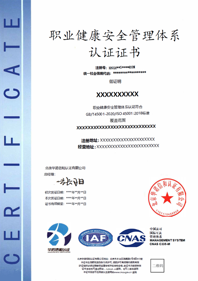 认证依据:GB/T 45001-2020 idt ISO 45001:2018,它与质量、环境管理体系并称为三体系。