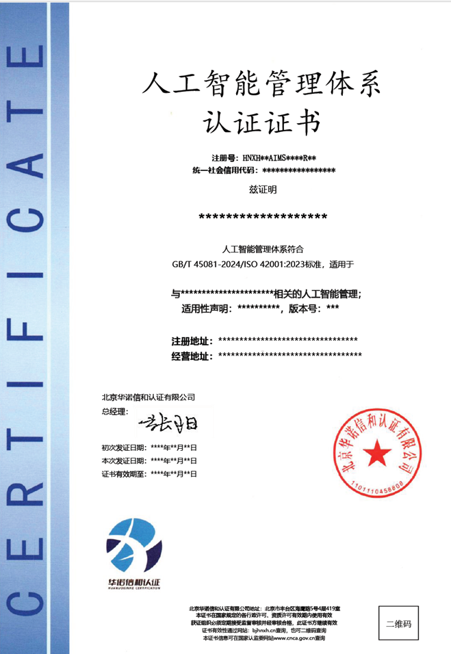 2、 按照GB/T45081标准的要求建立文件化的人工智能管理体系。