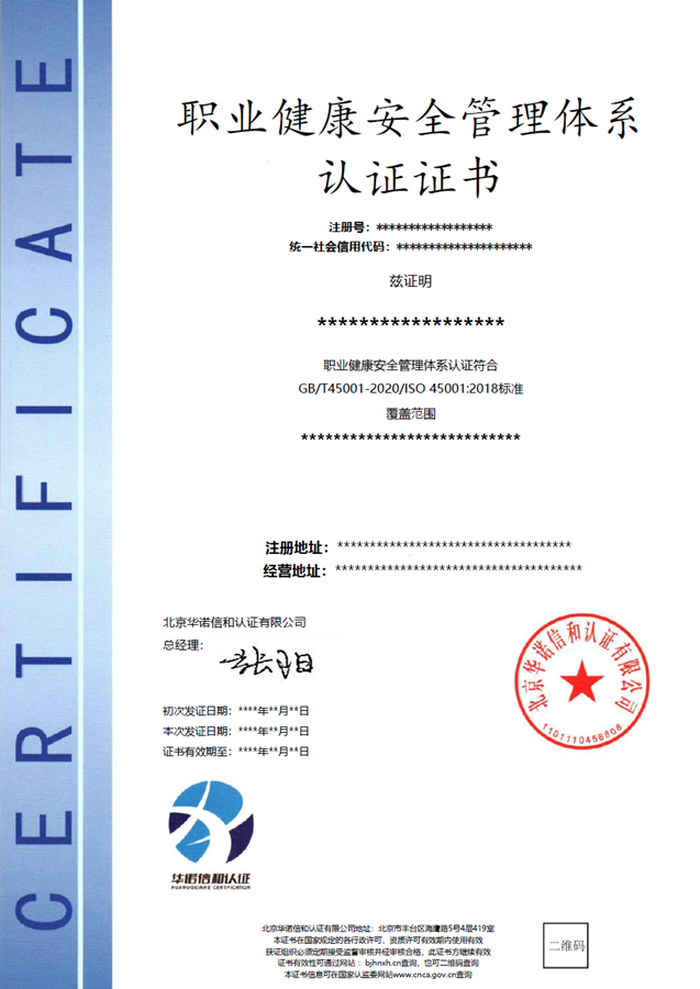 1、按ISO 45001标准要求建立文件化的职业健康安全管理体系。